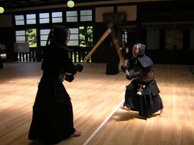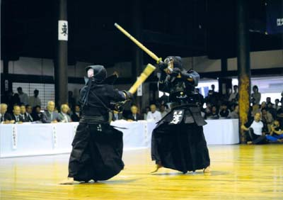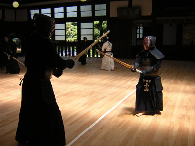 稽古のときにも簡単に間を切って始めるのはよくない。攻め合って元の間合いに戻る。縁を切らないって事は大事なことだ。 |